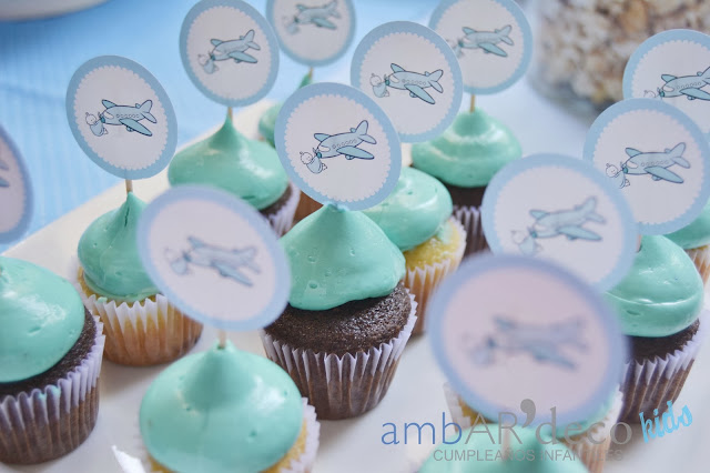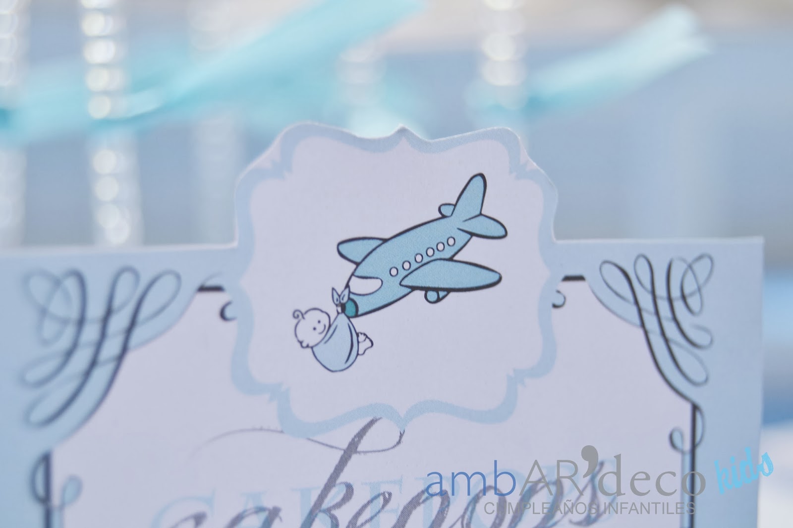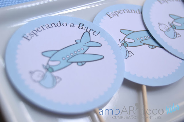El tema aeronvegante me esta siguiendo de cerca, jajaja y la alegría que me da, por que me hace acordar cuando volaba y por ende saber CUANTAS amistades me dejo esa etapa, y para seguir con el tema, Bart nacerá de 2 tripulantes, con lo cual el diseño se me ocurrió a partir de que en vez de que lo traiga la cigüeña, lo traiga un avión y en base a eso fue todo el Babyshower.