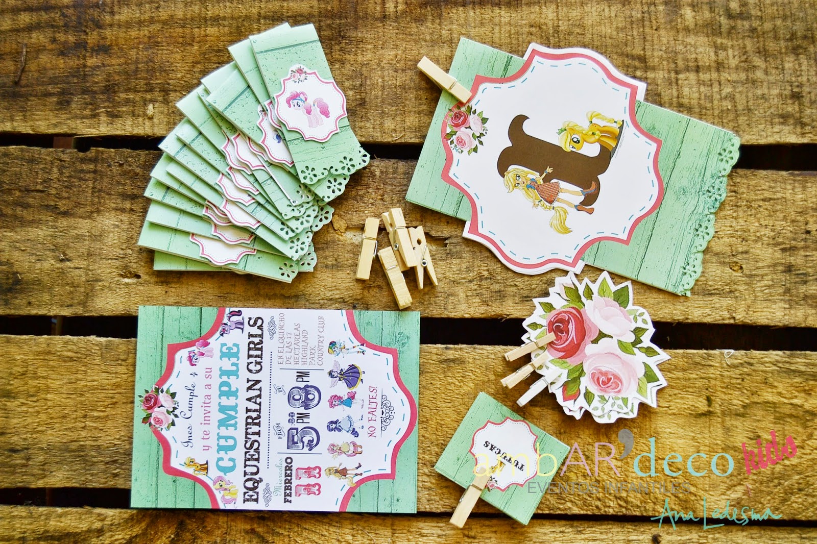 Ines cumplió 4 y esta como loca con las Equestrian Girls, así que su mama me escribió para pedirme todo en ese tema. Divina, cuando le pregunte de que era, y me dijo, me pregunto si me estaba matando con el tema? jajajaja la verdad que en este rubro y con hijo varón, hay temas que no estoy canchera y tengo que investigar, lo cual me divierte muchiiisimo y me encanta el desafió. Siempre me parece mas divertido algún tema diferente que temas ya hechos muchas veces, igual siempre el que manda el el mini cliente, porque lo mas importante es que ellos lo disfruten sea el tema que elijan.