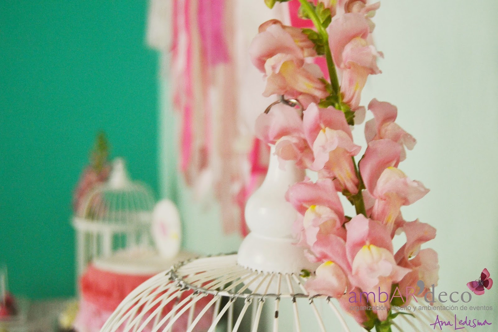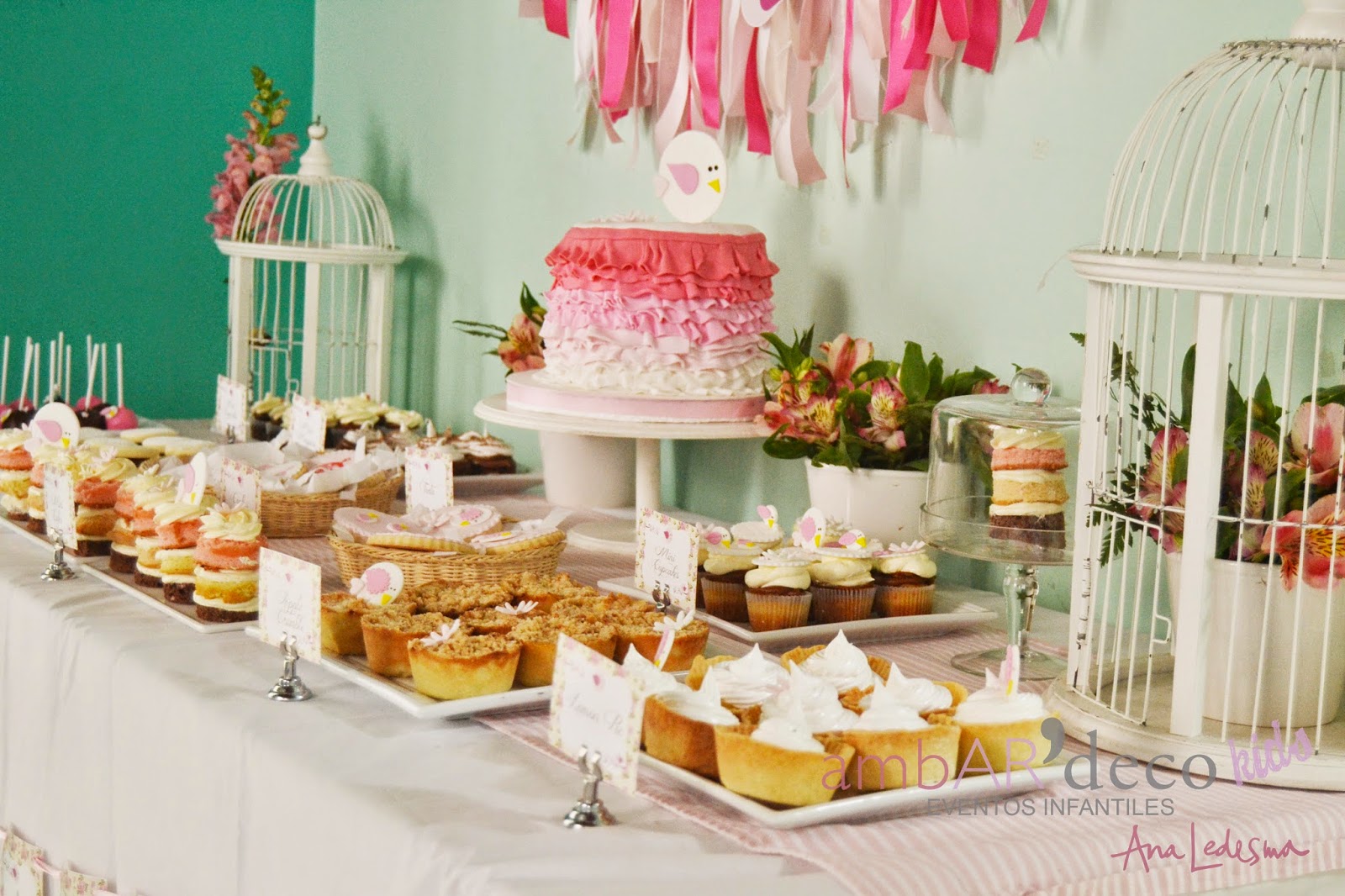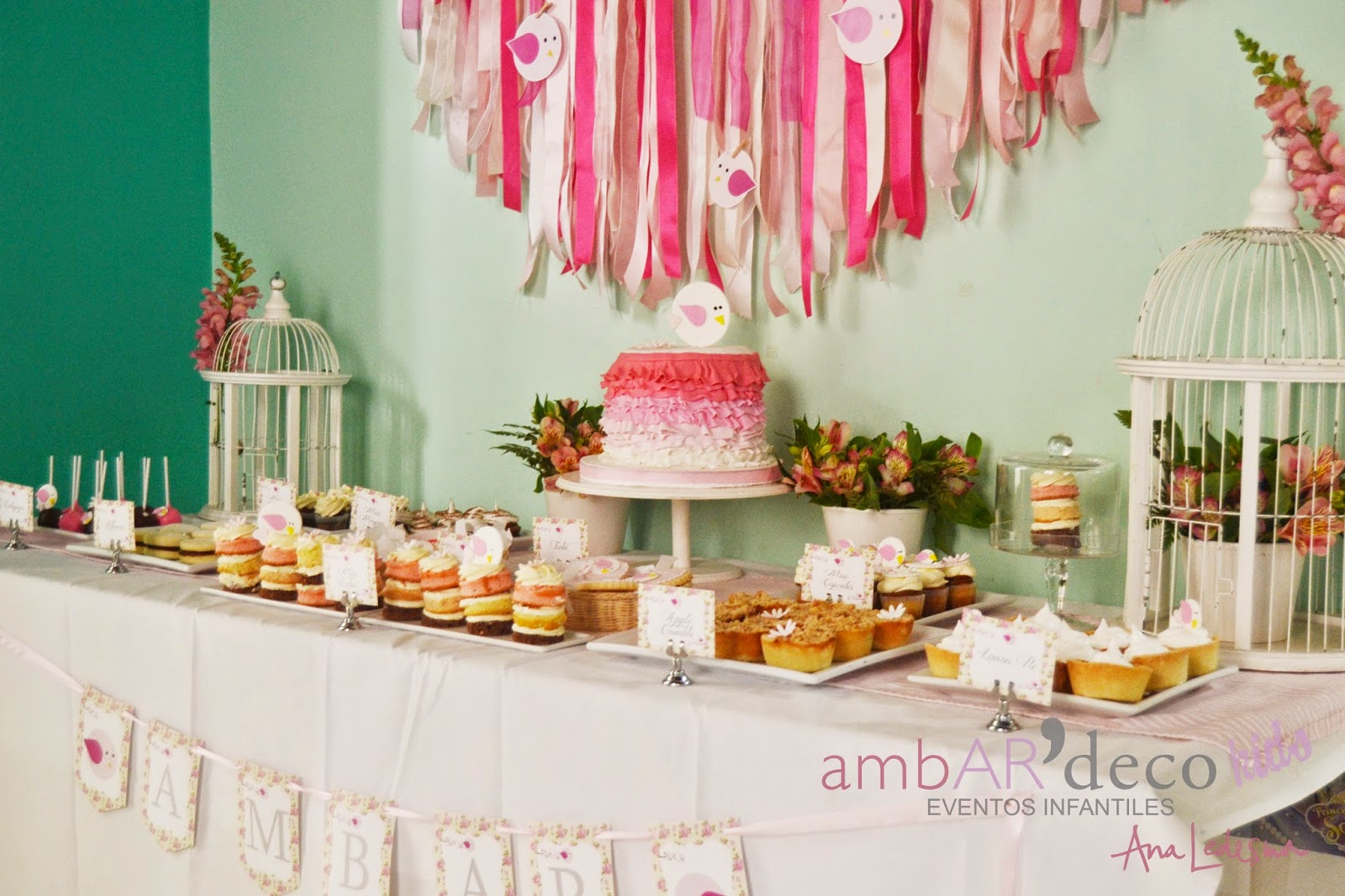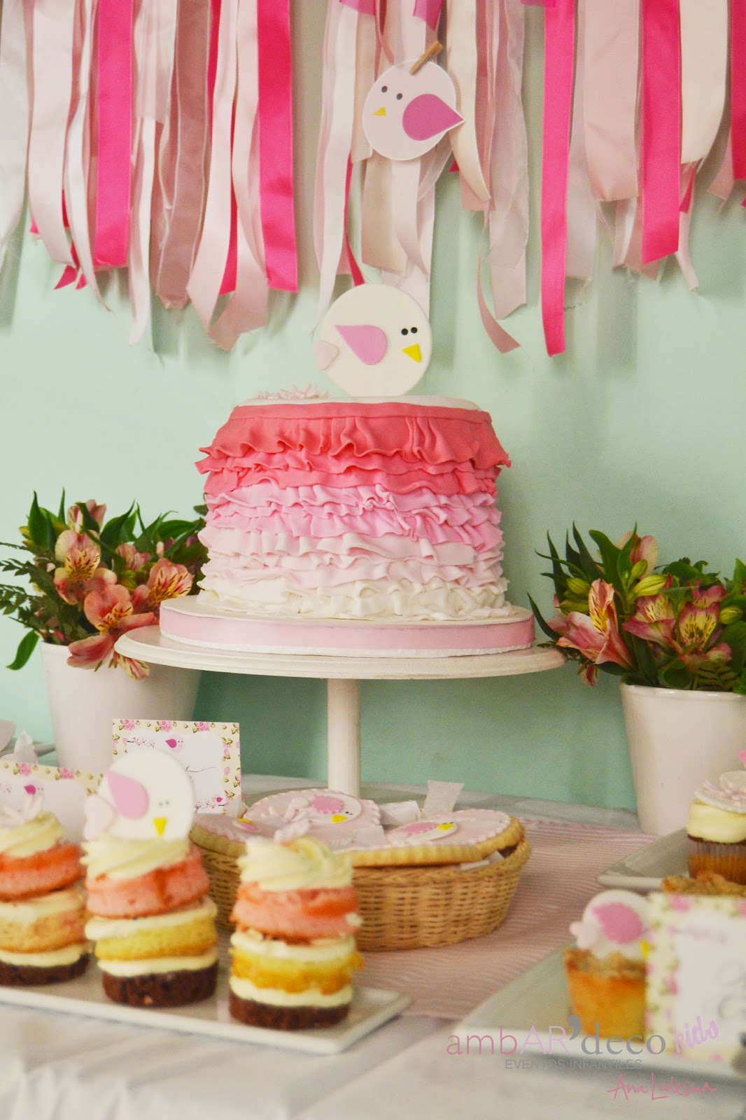Silvi se encargo de la repostería en base a los pajaritos que le pidió Valeria y por ende lo mismo hice yo con el diseño de la papelería, y la ambientación. Los colores eran rosa hasta el fucsia!