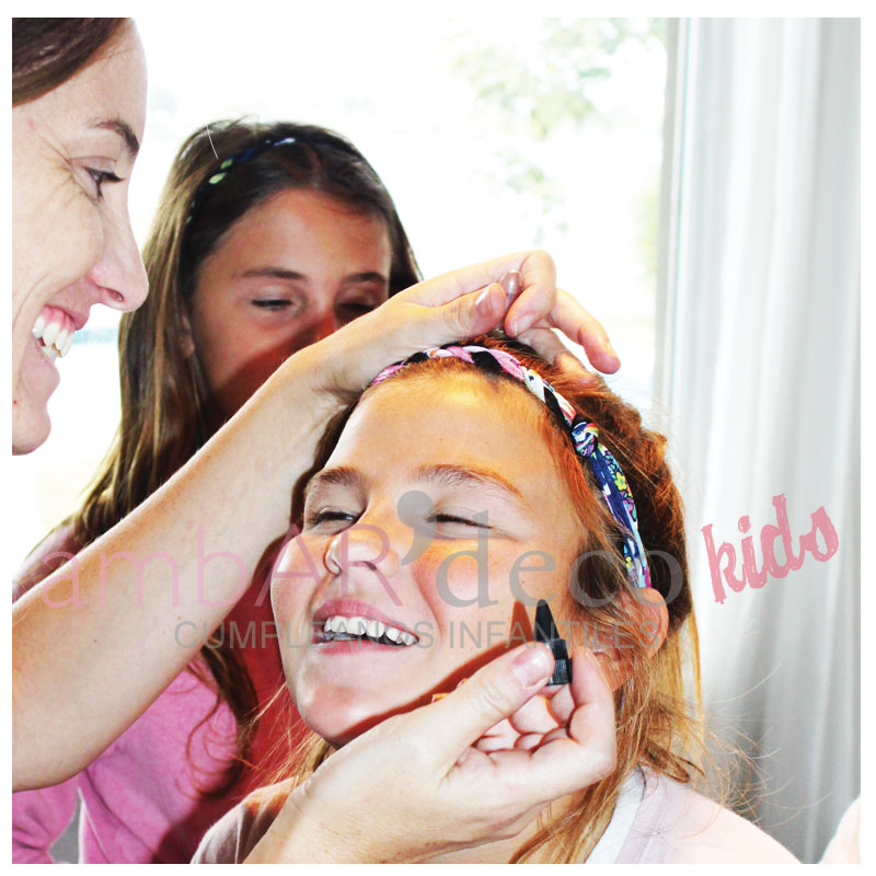 Obviamente las maquillamos…y se pusieron las vinchas que cada una se hizo y que se llevaron de suvenir junto con el bolsito.