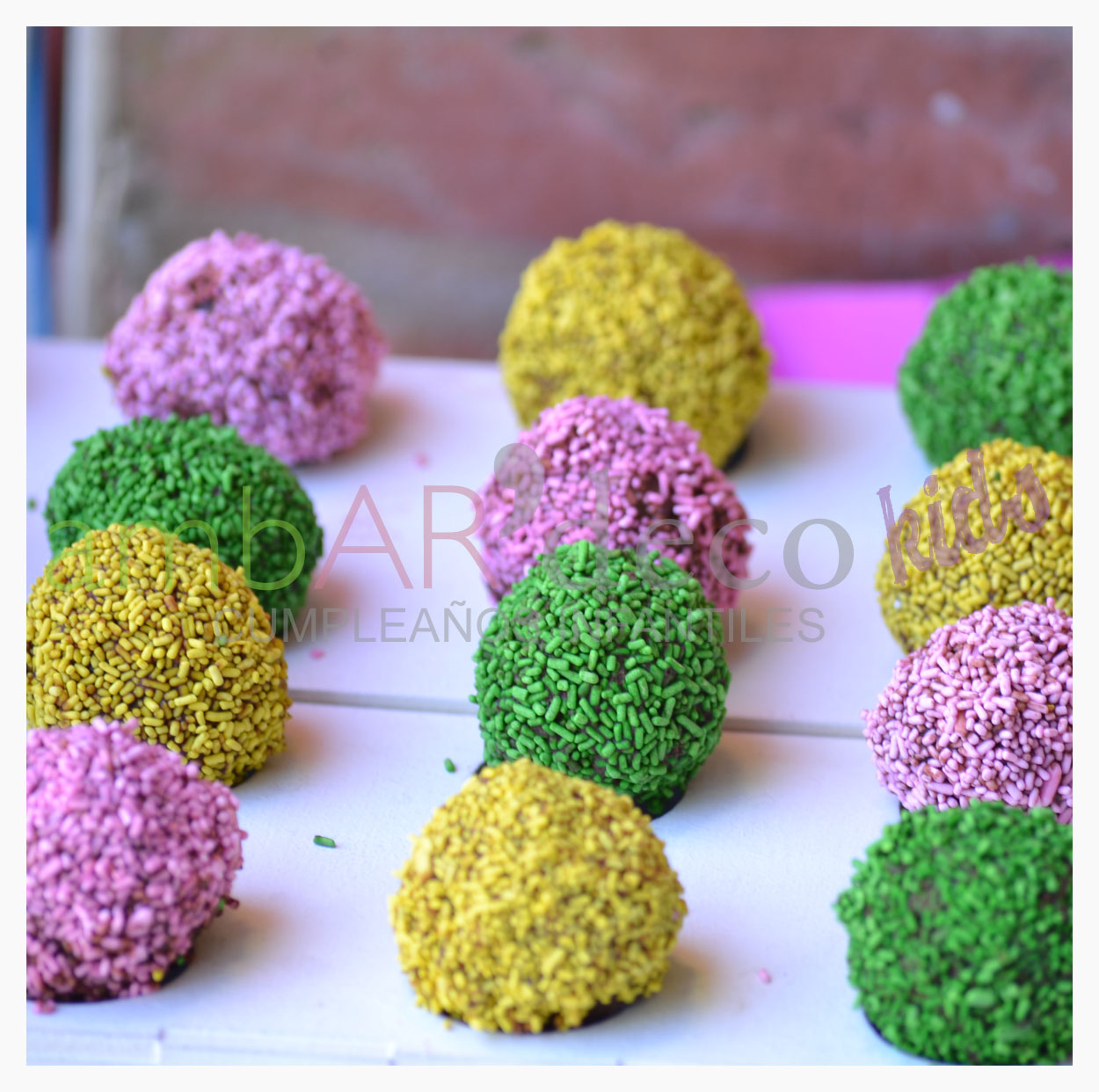 Todos los platos en blanco para seguir una misma linea en la mesa dulce, para la bebida habían vasitos con volados en fucsia y verde y pajitas para cada uno y de fondo de mesa, rosetas. Hice los toppers y las etiquetas de la comida y para crear algo diferente hice todo con un estilo mas femenino con flores de fondo.