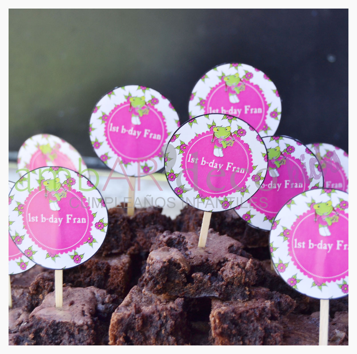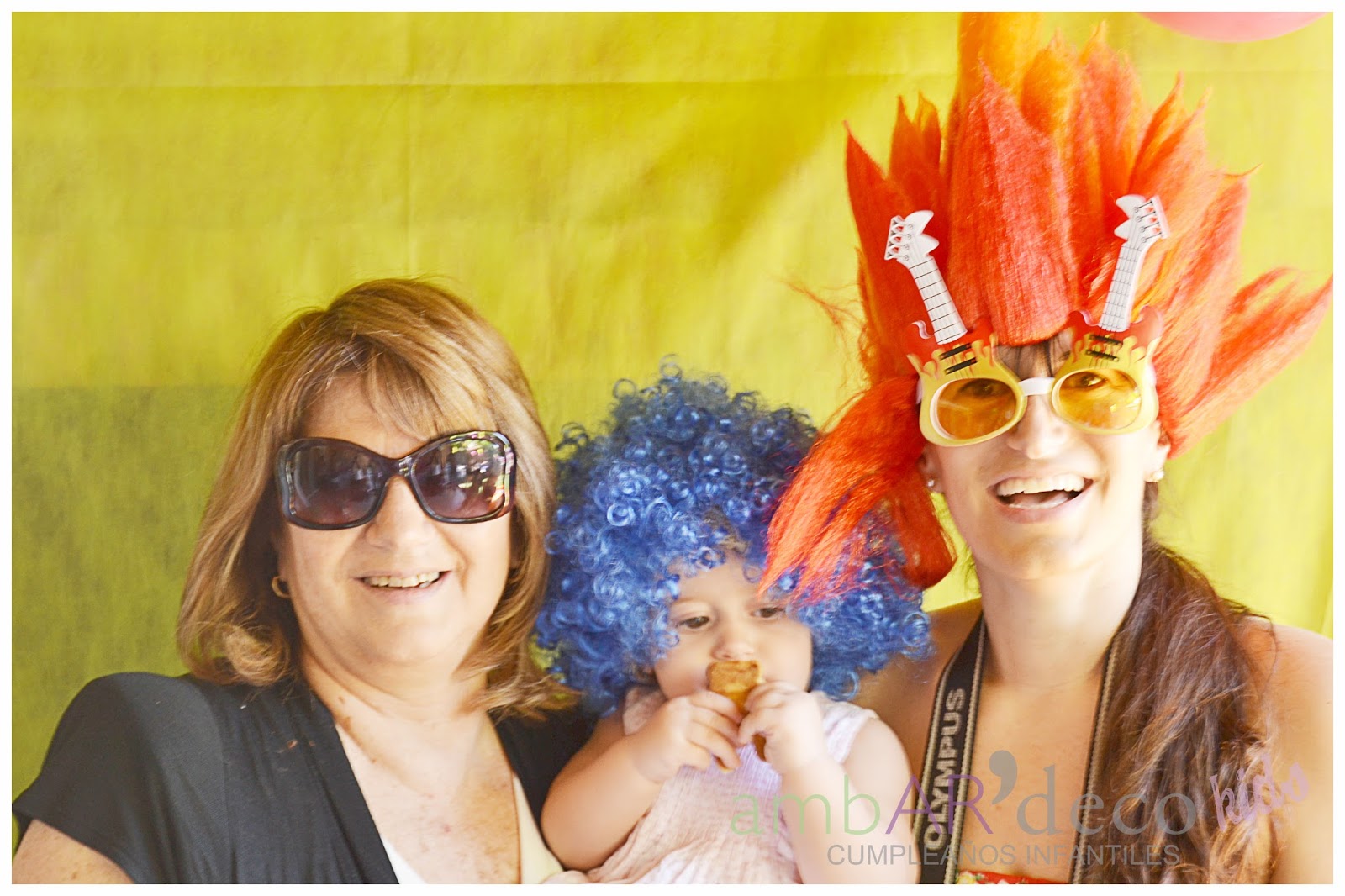 La abuela le preparo toda la comida para la mesa, increíble. En el jardín pusimos unos pinches para poner fotos desde el nacimiento de Fran hasta el año, unas guirnaldas de pompones en los tonos con los personajes de Adriana,tiras de creppe para cubrir la reja de la pileta y una guirnalda con su nombre en donde estaba la mesa y en la galería.