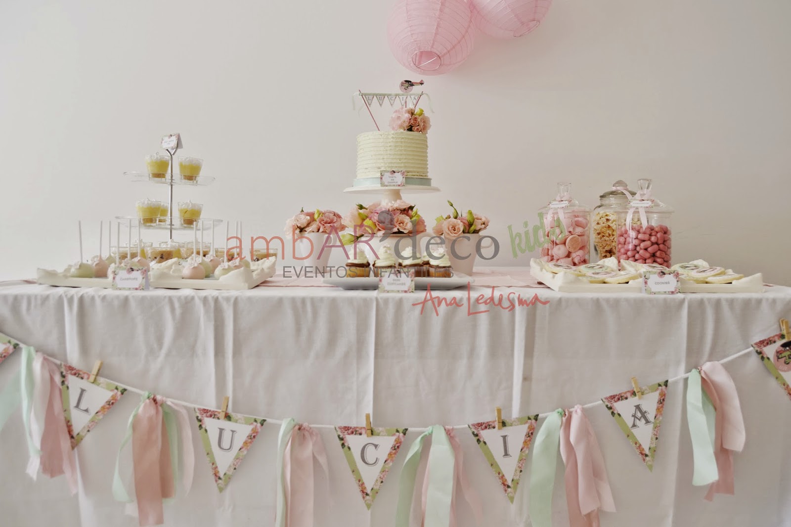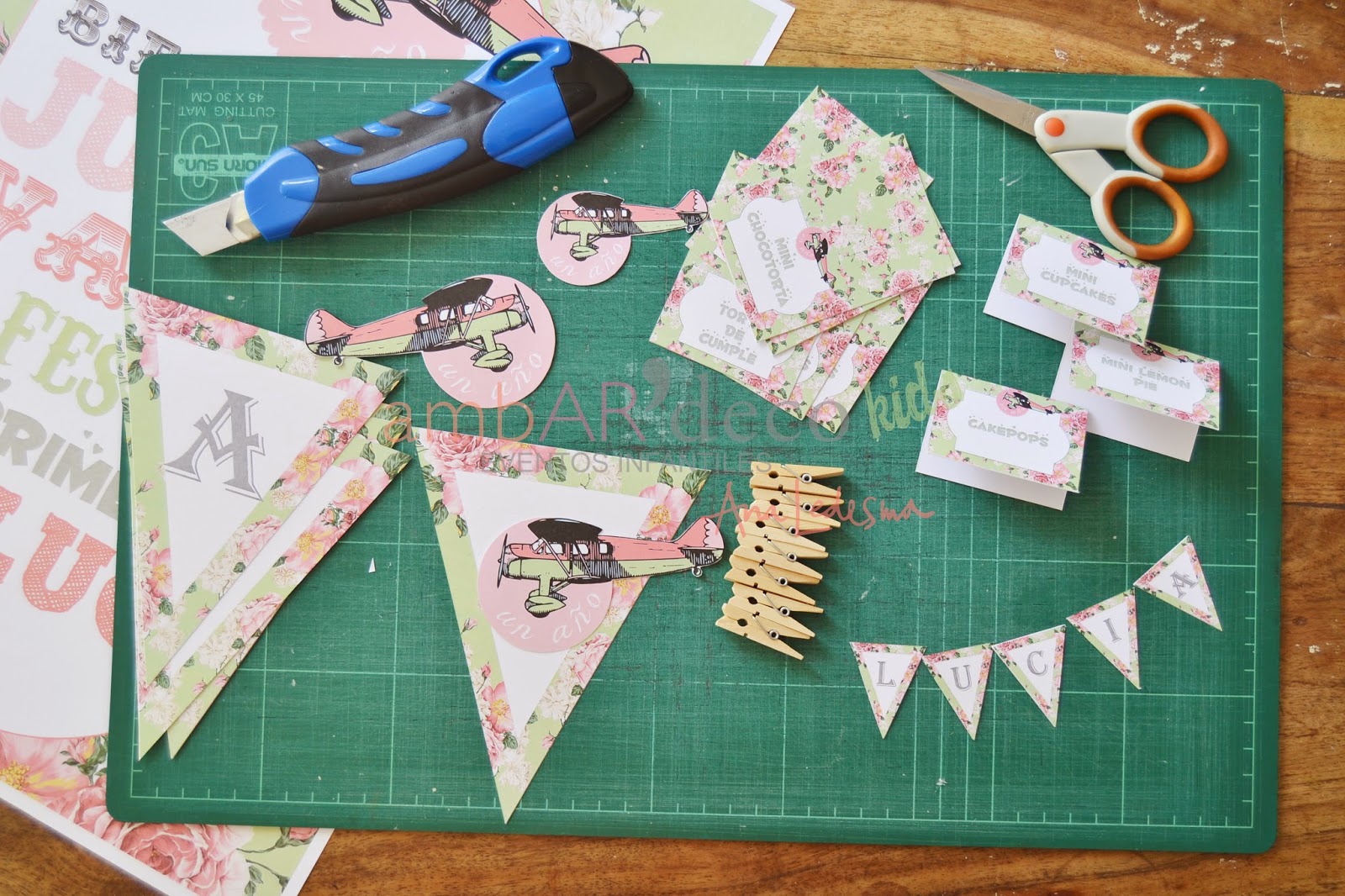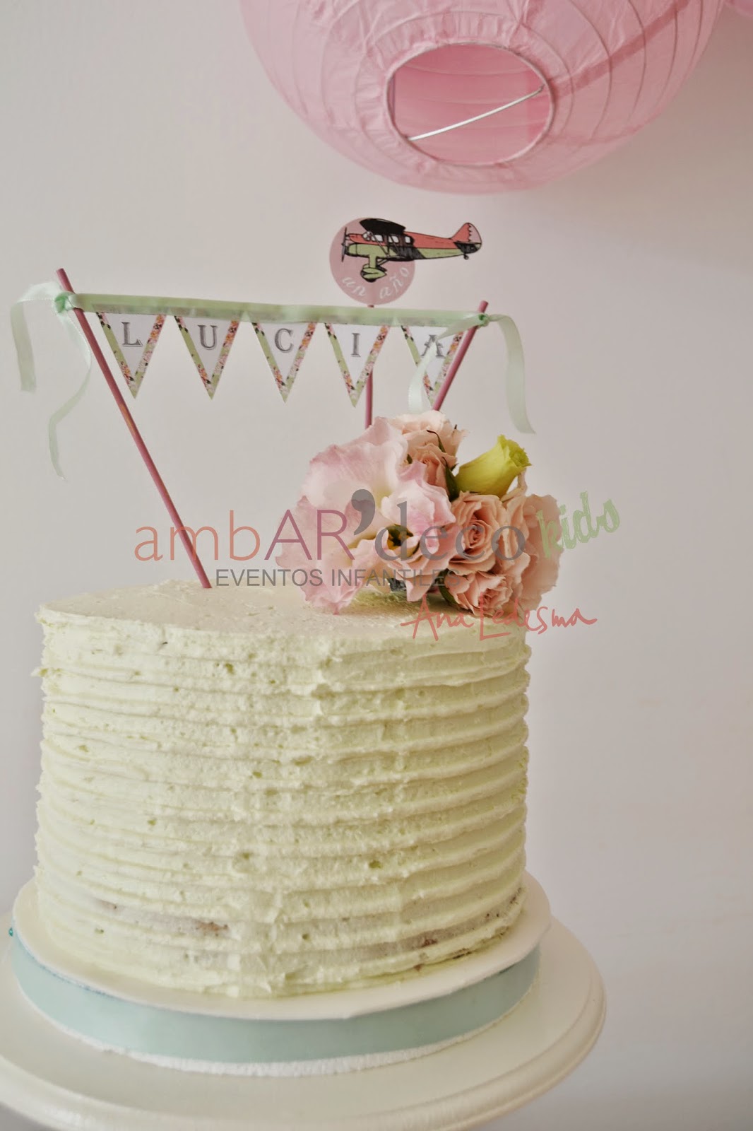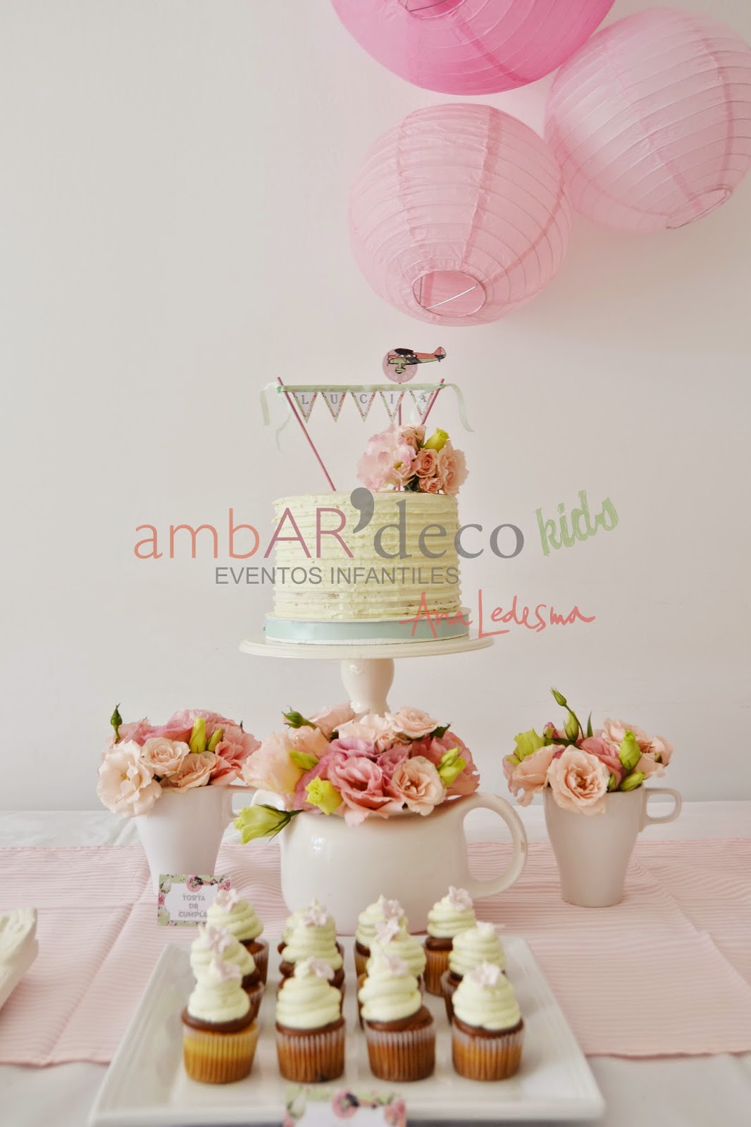 Lucia, cumplió su primer año, y teniendo madre azafata, padre piloto y una avioneta familiar, que mejor tema que el que eligió la mama, en tonos rosas y verdes?